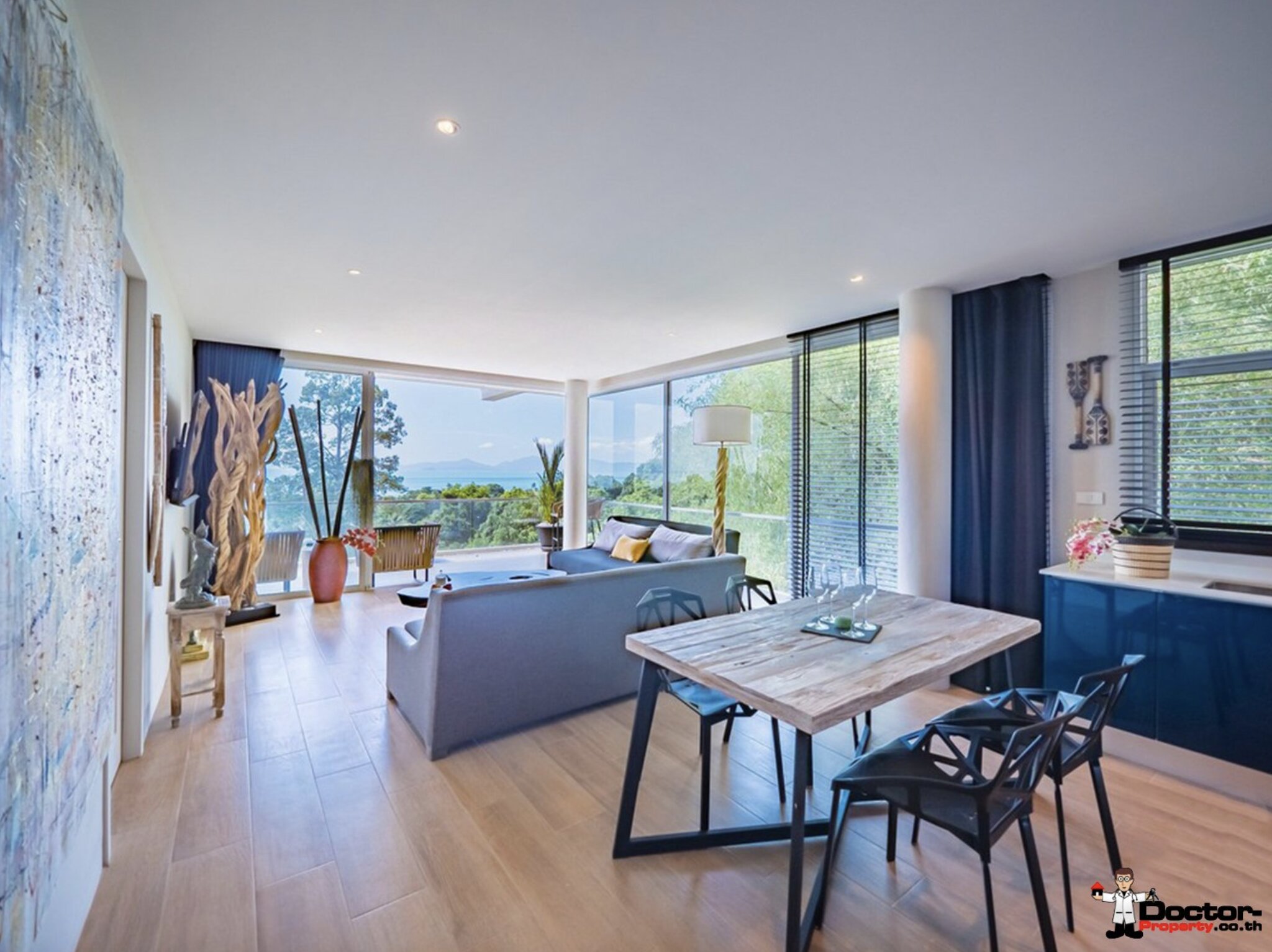 This charming two-bedroom apartment is located within a private residence in Bang Por, offering stunning sea views and a peaceful island lifestyle. Designed with a modern open-plan layout, the living area is bright and airy, with large sliding glass doors opening onto a private balcony. Stylish furnishings and contemporary décor create a welcoming space for both relaxation and entertaining.