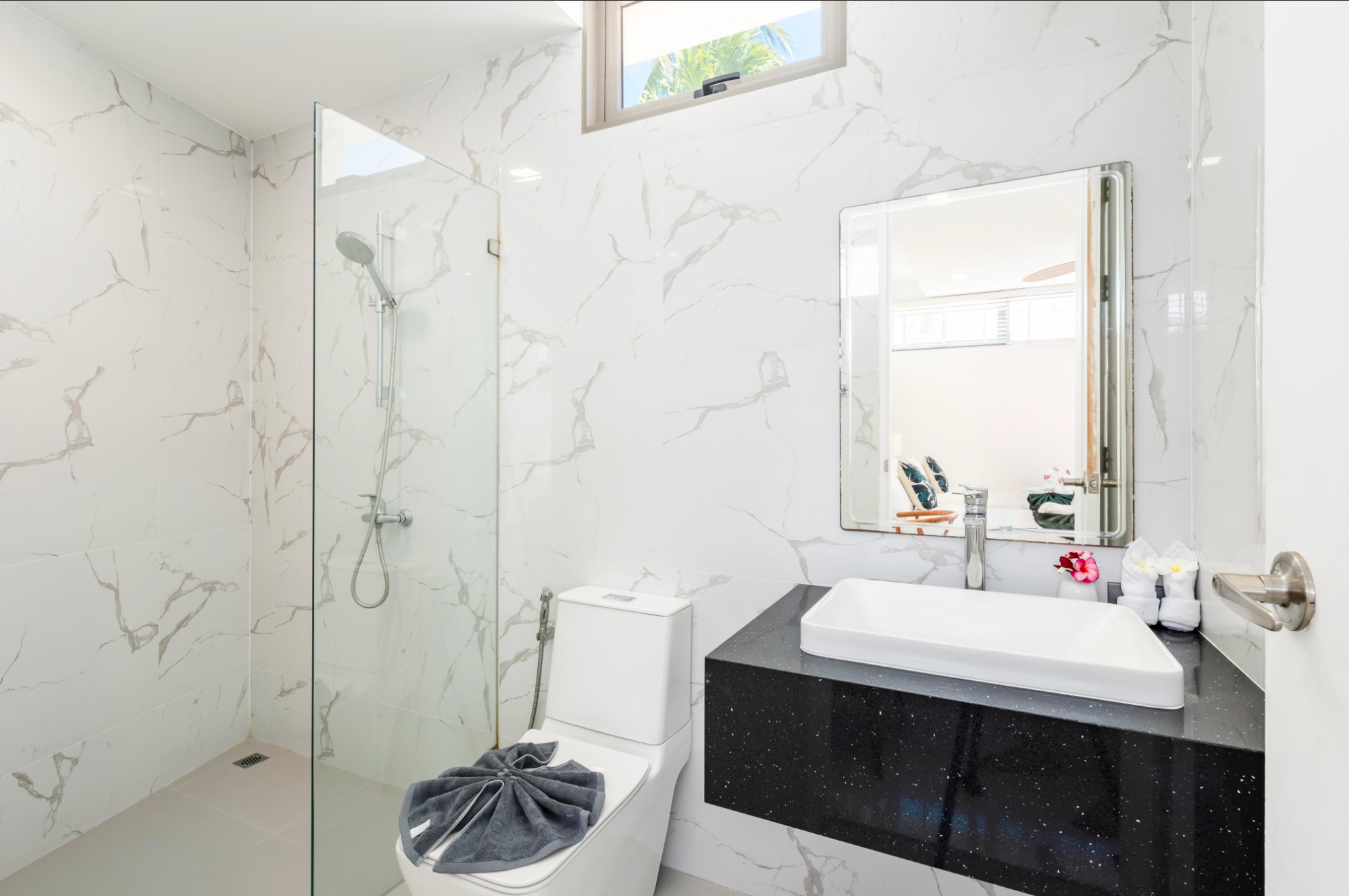 - Guest Bedrooms (Upper Level): Two guest bedrooms with queen-sized beds, generous storage, and access to stylish bathrooms featuring high-quality fixtures.